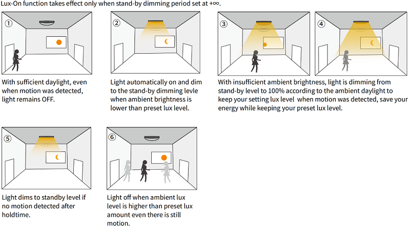 Propter technologiam dualem-PD, sensorem MC004-S02R differentiam inter lucem naturalem et lucem ductus artificialem indicare potest. Sensorem convertet in adfixa lumine tuo, cum lumen ambiens humilius est quam valorem occasus, etiam motus nullus detegitur. Cum lumen ambiens usque ad valorem occasum est, sensorem avertet adfixa levia etiamsi adhuc motus est.