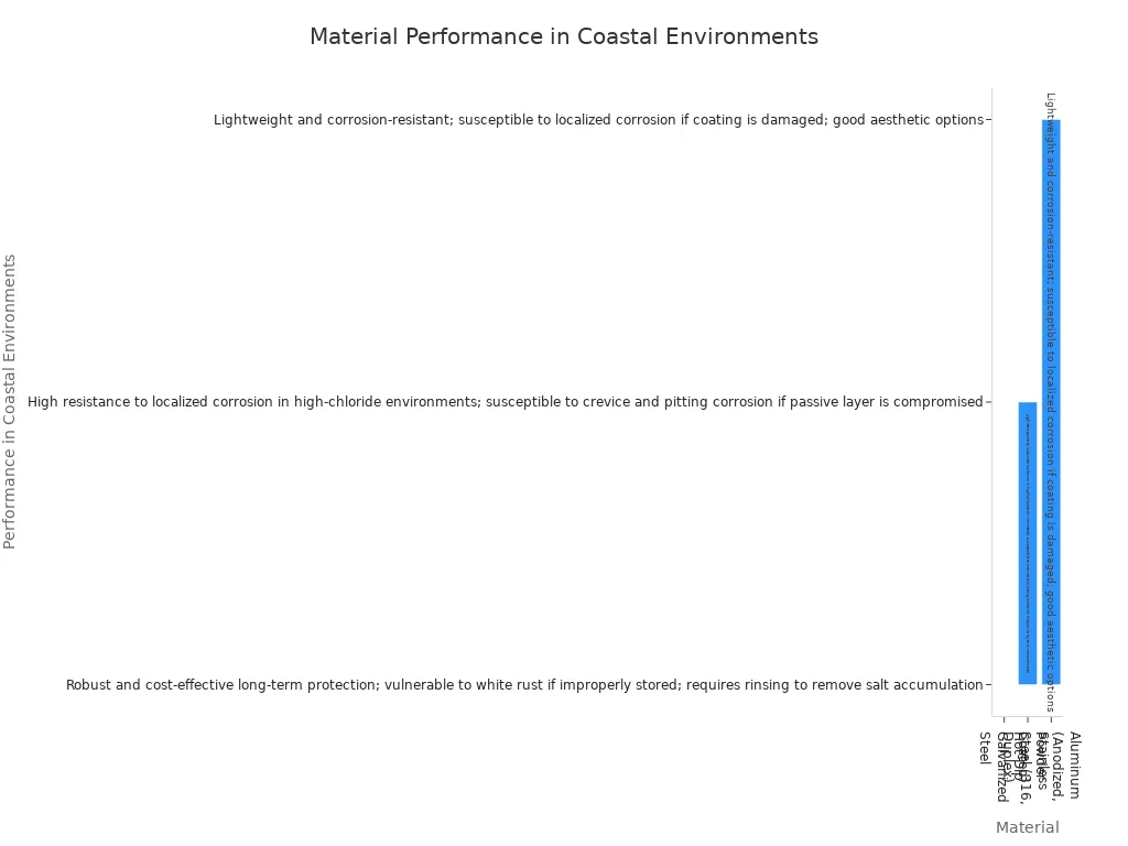 Manufacturers tunica pulveris utuntur finitur et opercula obsignata ut luminaria longiora efficiant. These features auxilium duxit weatherproof accendendi superesse tempestates, humidum aeris, et salis imbrem. Vides quam variae materiae prope mare in chart infra operantur;
